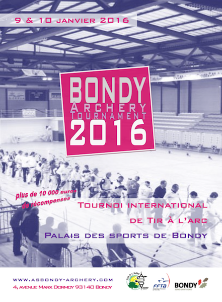 - le Tournoi international de tir-à-l’arc dont la dernière édition a eu lieu en janvier 2016 (ci-contre affiche de la manifestation copyright AS Bondy Archery).